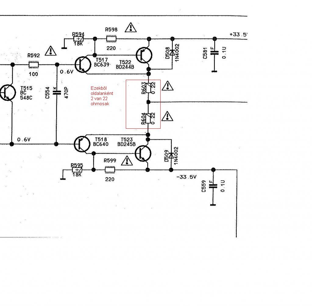 A rajzon 0,22ohm szerepel. Kicserélted őket 22ohmra?