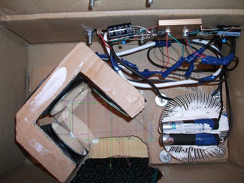 Igaz én eddig csak egy sima 2 magnómotoros DVD író lézeres spiro-showt csináltam, de néha azért jó lenne valami nagyot is alkotni. De nincs műhelyem, ahol a mechanikai elemeket meg tudnám csinálni, persze biztosan meg lehet csinálni műhely nélkül is(?), de én az kínlódásnak tartom.