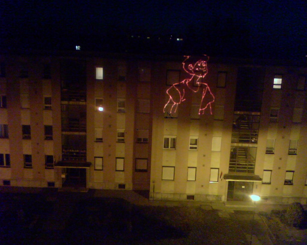 Mivel hihetetlen szűkre sikerült megcsinálnom a csiksugárzó vörös diódát,gondoltam készitek pár képet.Kültérre,46-7 méter távolságra vetitve.