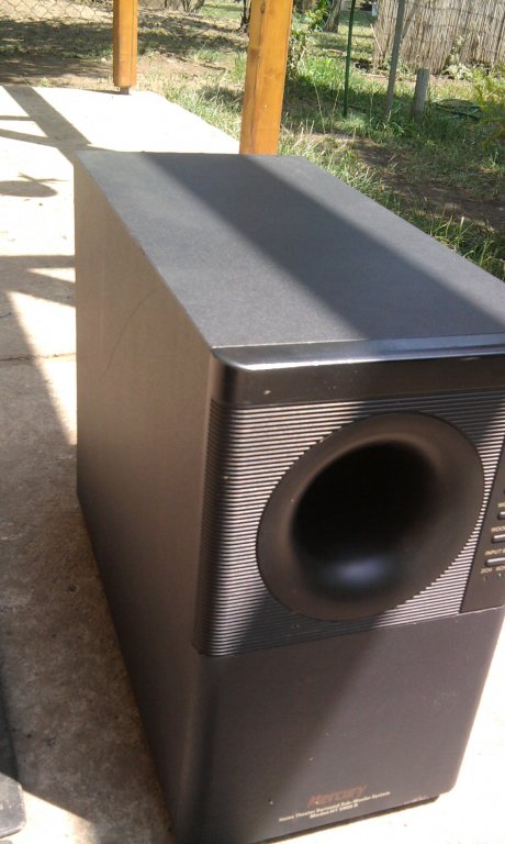 Sziasztok! Kaptam egy rossz Mercury HT5800-as házimozit, amit ki is "beleztem" csak a mélyhangszórót hagytam benne, majd rákötöttem egy erősítőre! ( 16 Ohm-os és 50 W-os a mélynyomó hangszórója, én egy 100W-os Hifire kötöttem (100W 6 Ohm -on) de elég kevésnek találtam az "erejét"..gondoltam leveszem a hátulját. így néz ki hátulról