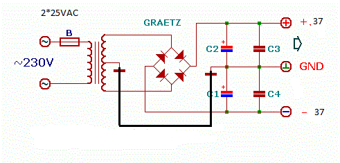A trafo:2*25vac 4amper.