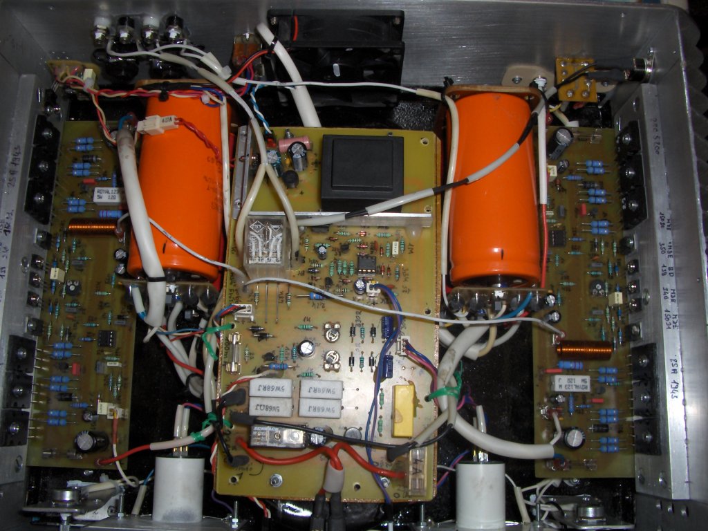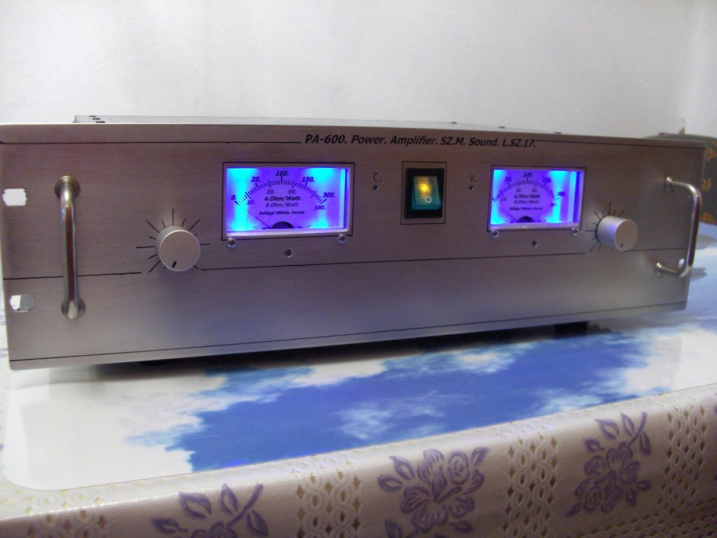 Sziasztok, elkészült az új PA-300,am és ahogy ígértem teszek fel róla egy pár képet. Az igaz, hogy nem igazán úgy sikerült mint, ahogy szerettem volna, mert a drága puffer kondik miatt csak a jóval nagyobb méretű bontott kondikat kellet bele préselnem a dobozba. Az agyon árnyékolt BEAG trafók húztak ki a sárból és a nagy kondik hátra tolása a dobozba, hogy a gerjedéseket el kerüljem szerencsére még elég távol tudtam tenni a 230V,ot is a be és ki menettől Tegnap meg voltak a bemérések. A trafókat 11db,ból válogattam ezek 42V váltót adtak le terheletlenül ezt egyen irányítva és szűrve kaptam +-58V,tot a nyugalmi áramot 100mA, állítottam 20 perc üres járás után ezután el vittem a barátomhoz, hogy oszciloszkópon és mű terhelésen meg mutassa a kicsike mit tud. A mérést 4.Ohm,mos műterhelésen végeztük 1kHz,10kHz,és 15kHz, frekvencián 243W,ig torzítatlan maradt ezután a tápfeszültség esése miatt némi változás volt látható a négyszög jelen. Az idő rövidsége miatt több mérést nem volt módomban elvégezni. Ma reggel 7óra óta nyúzom míg a nejem haza nem jön olyan 14 óra feléig eddig rendben működik és nagyon szép hangja van. Lehet, hogy majd magamnak is meg építem egy kicsit combosabb trafóval.?!