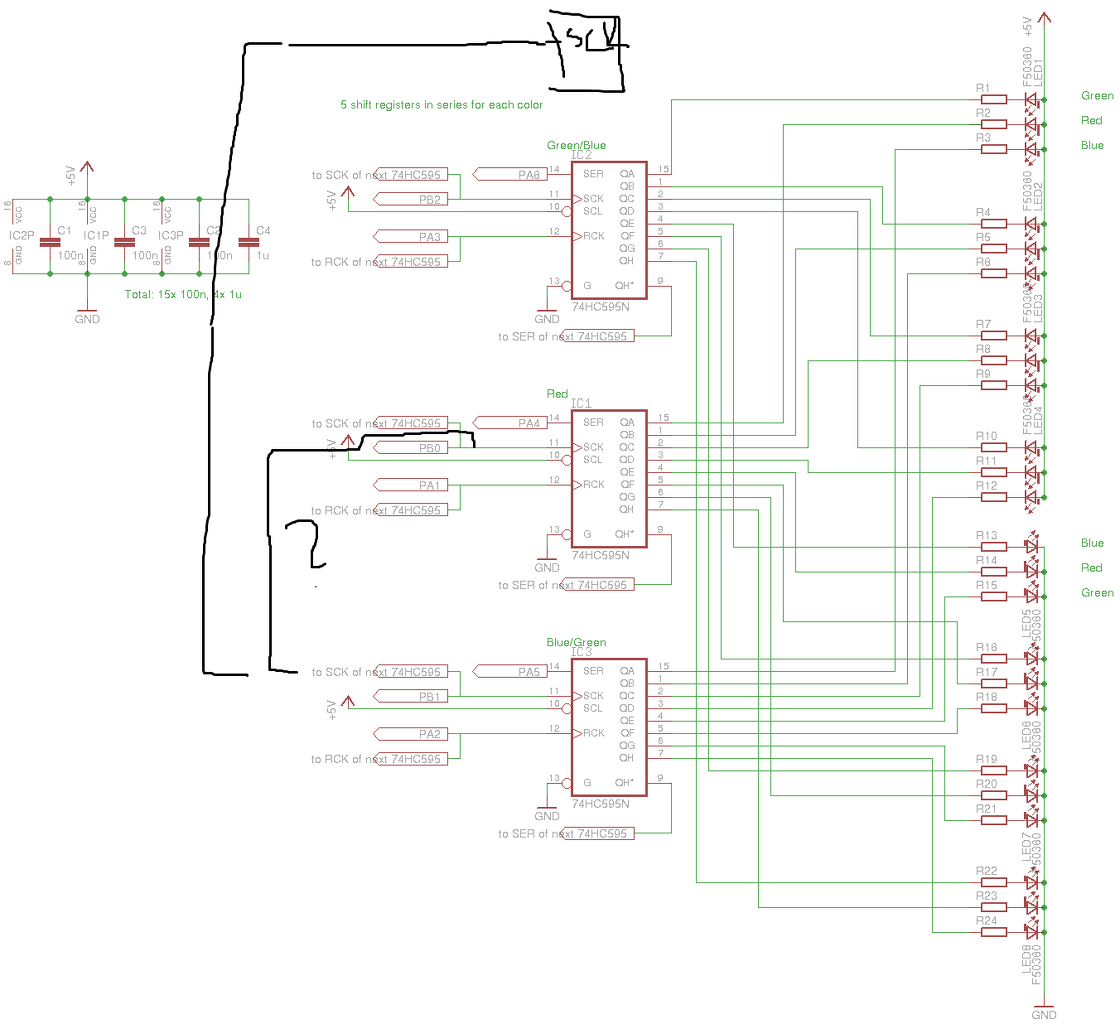Lenne egy kérdésem. Segítsetek értelmezni egy kapcs. rajzot. Szerintem a következő 3-as shift reg. 1ső SCK-jához kell kapcsolódnia. Ami a rajzon a nem kérdőjeles vonal. Szerintetek is? Üdv: Ati