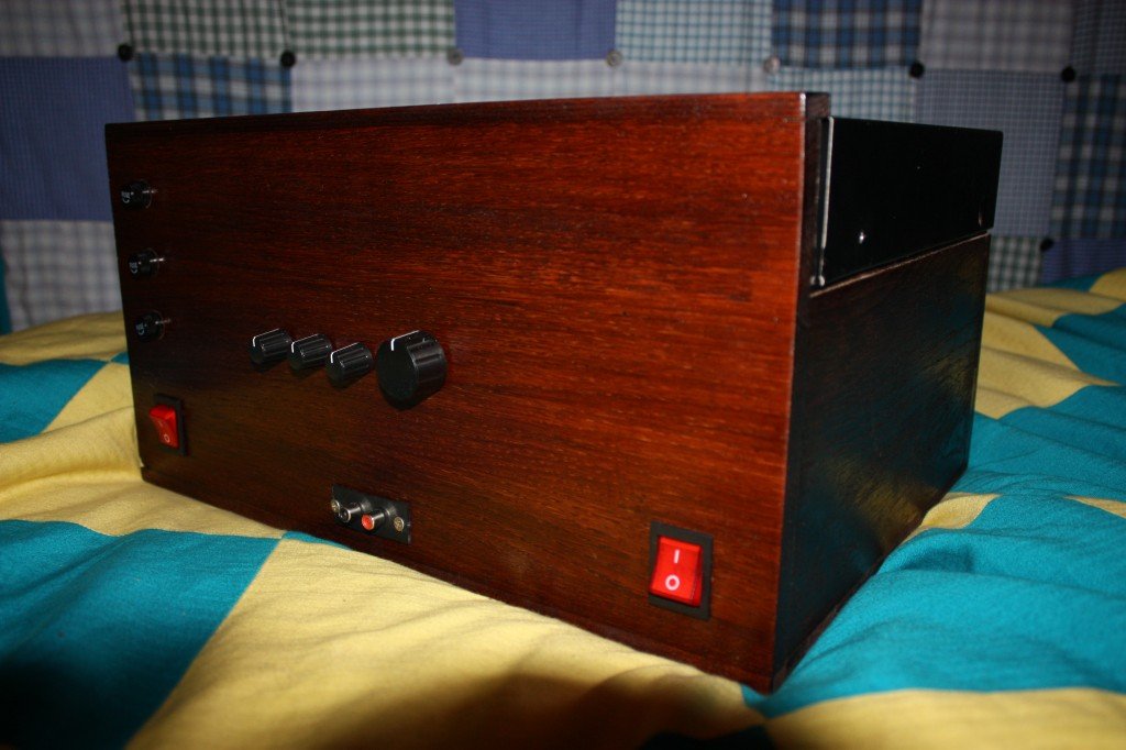 Nem tudom mennyire vág a témába, de én első szerzeményemnek (fényorgona ) egy fa dobozt készítettem tölgyfából. A külső felülete piros magasfényű lakkal van bevonva. A belsejének az alja alufólia bélést kapott. A sorkapocs, zavarszűrő és a triakok alá pedig lángálló szigetelés került, hiszen fő a biztonság Bár a belseje még nincsen rendesen lefogatva a külseje szerintem elég csinos lett. Érdekelne a véleményetek ti mit gondoltok róla.