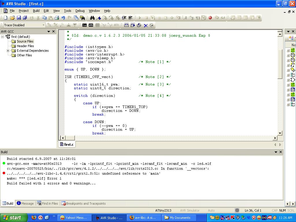 feltettem a win avr-t és az avr studio 4 -et, bemásoltam a help-ben megtalákható példaprogit, de hibaüzetet ad kompiláláskór. Valaki megtudna segíteni egy egyszerü ledvillogtató progival?