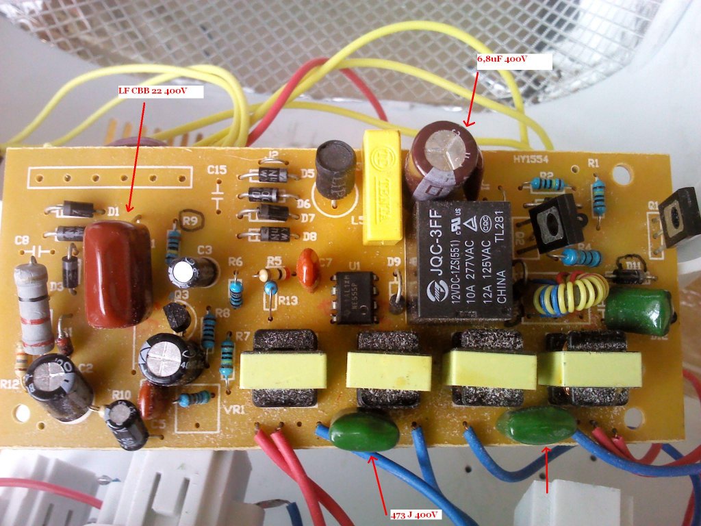 Sziasztok. Itt van a régi kép és az új. Bejelöltem az újon is hogy melyik alkatrészeket cseréltem ki amik hibásak voltak. Még mindig nem megy ez a vacak. Szerintetek mivel lehetne még probléma? Az ellenállások is jók azok közül egyet kellett cserélni azt is bejelöltem a diódák is jóknak tűnnek-forrasszam ki egyesével és úgy mérjem le)? vagy már nem tudom. Szerintetek a kijövő szálakon ami megy az égőhöz mennyit kellene mutatni a mérőnek? mert semmit nem mutat,az égőken csak annyit ír hogy UV-9W 365nm. Válaszokat előre is köszönöm. Üdv.