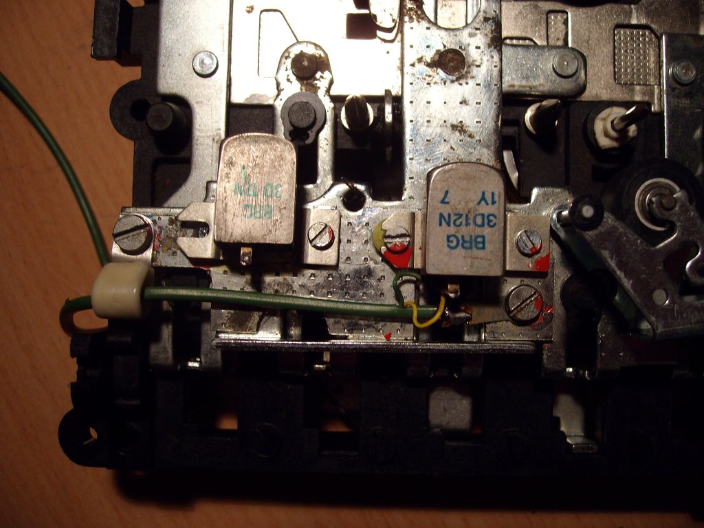 A BRG kazettás mechanikákkal kapcsolatban írok megint. Egy MK27-esből kivett kuplunggal a Vega rádiósmagnót sikerült tökéletesen működőképessé tenni, most már nem ingadozik a magashang a tekercs elején sem. Külsőre nem sok gondja volt, nem sokat használhatták. De, így lényegében minden megmaradt a másik magnóból is, így nekiálltam azt is rendbetenni. A dobozt kimostam, potméterek kaptak kontakt sprayt, és beindult a szerkezet. De nagyon tompán szól, akárhova állítom a fejet. Szerintem a benne levő fej kopott, és ez okozza a gondot, így beletettem egy másik BRG fejet. Ezzel szépen, tisztán szólt, viszont erőlködve indul el, és nyávog. Megnéztem, mindkettő '3D 12N' típusú, de az újabbik magasabb annál, ami benne volt (igaz, ez elvileg MK29-be való, de a típusa ugyanaz)! Csak szemléltetésképp betettem a nagyobbat a törlőfej helyére - valaki tudja, hogy a régit hogyan lehet beszerezni vajon?