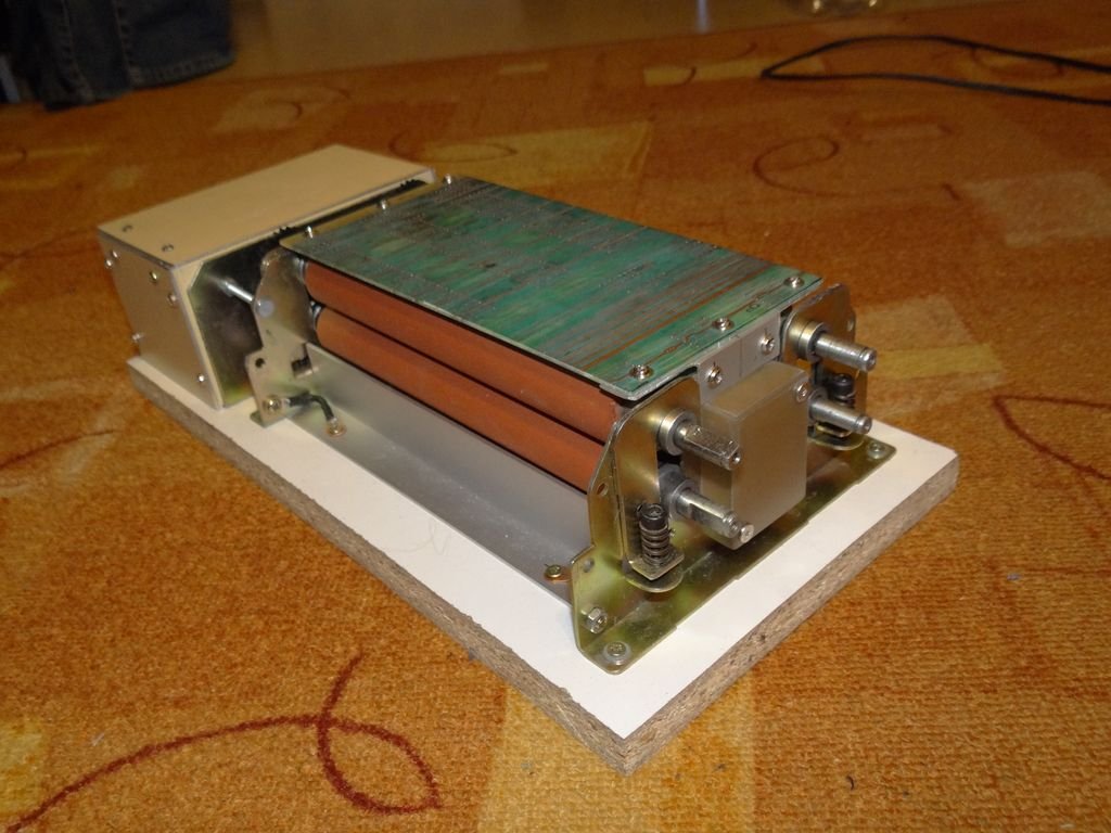 Nálam a burkolat, a kapcsolók, és a vezetékezés teljesen hiányzott, azért kellett ilyenre kialakítanom. A fűtőlapok meg egy 1 mm-es távtartóval össze voltak csavarozva, azon nem fért volna át a nyák, ezért a rugós felfüggesztés. Ey forgásirányváltón agyalok még, ha rosszul kapja be a nyákot és a papírt, vissza lehessen tekerni.