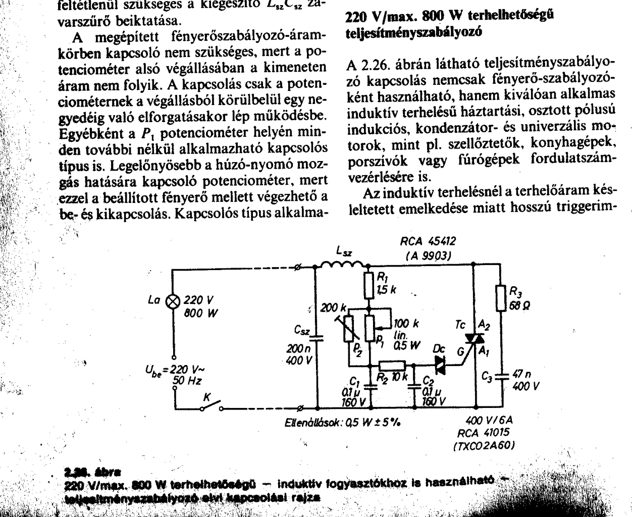 Köszönöm, szerinted az a kapcsolás megfelelő lenne a szabályozásához, 2 W-os ellenállások jók a kapcsoláshoz ? Még a fojtótekercset keresgélem,de csak 100 uH -t találtam. / C1-C4 / 100nF 400V fóliakondenzátor jó ? Diakból csak egy fajtát találtam a Hestorban /ER 900 = DB 3 Diak, 2A / 25-36V/ gondolom ez nem jó hozzá a feszültségérték miatt,triakból szerecsére nagy a választék. Köszönöm