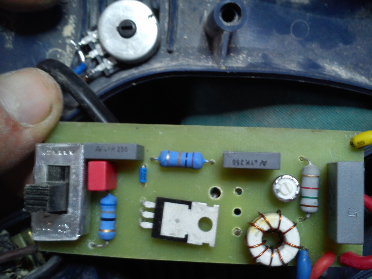 A képen látható tolókapcsoló nem hálózati feszültségre való. A triakkal párhuzamos RC tag (R3 C3), feszültségekre erősen igénybe vett. Az ellenállás még elmegy, de az a két raszteres kondenzátor nem odavaló. A rajzon is fel van tüntetve, hogy 400V-os legyen, de inkább 630V-os MKP kondi kellene oda. A 200K-os trimeren a vezérléstől függően rajta lehet közel a teljes hálózati fesz, robusztusabb trimer jobb lenne (vagy ha beállítottad, mérd meg, és tegyél be a helyére fix ellenállást). Hálózati áramköröknél nem túl szerencsés a vezetősávok közét rézöntéssel kitölteni, vagy legalábbis azon vezető sávok között nem, ahol a hálózati feszültség jelen van. Az induktivitás, amit készítettél valószínűleg nagyon kis értékű, persze ettől még működhetne az áramkör. Egy akkora vasra menet menet mellé tekerve kitölthetnéd a teljes toroidot egy kicsit vastagabb huzallal. Kefés motorhoz jónak kellene lennie a szabályzónak. Izzólámpás terheléssel működik? Meg kellene mérni, hogy a triak vagy a diak vagy a C3 kondenzátor nem lett-e zárlatos. C1 és C2kondenzátorokon kb. 30V-os váltakozó feszültséget kellene mérni. Ha megnézted ezeket, akkor próbálok még segíteni.