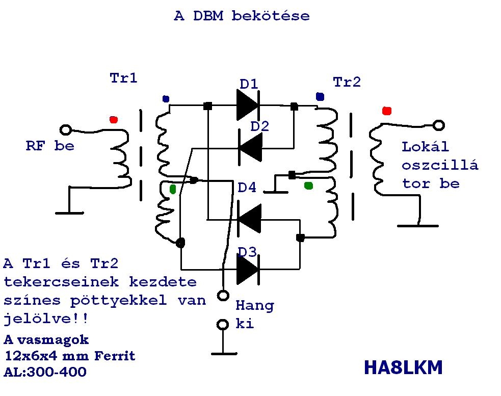 Ma szereztem párját a fenti takarékos izzó toroid vasmagjának, tekertem rájuk hasra ütés képen 9 menetet 0,25 Zománc-selyem huzalból valamint kvartettbe válogattam mezei 1N4448 Si diódákat és kész a DBM .