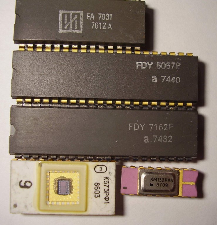A első képen a két alsó cucc ruszki, a bal oldali egy 2708-klón eprom: