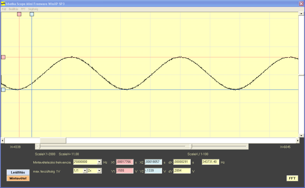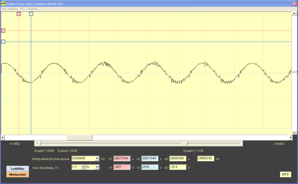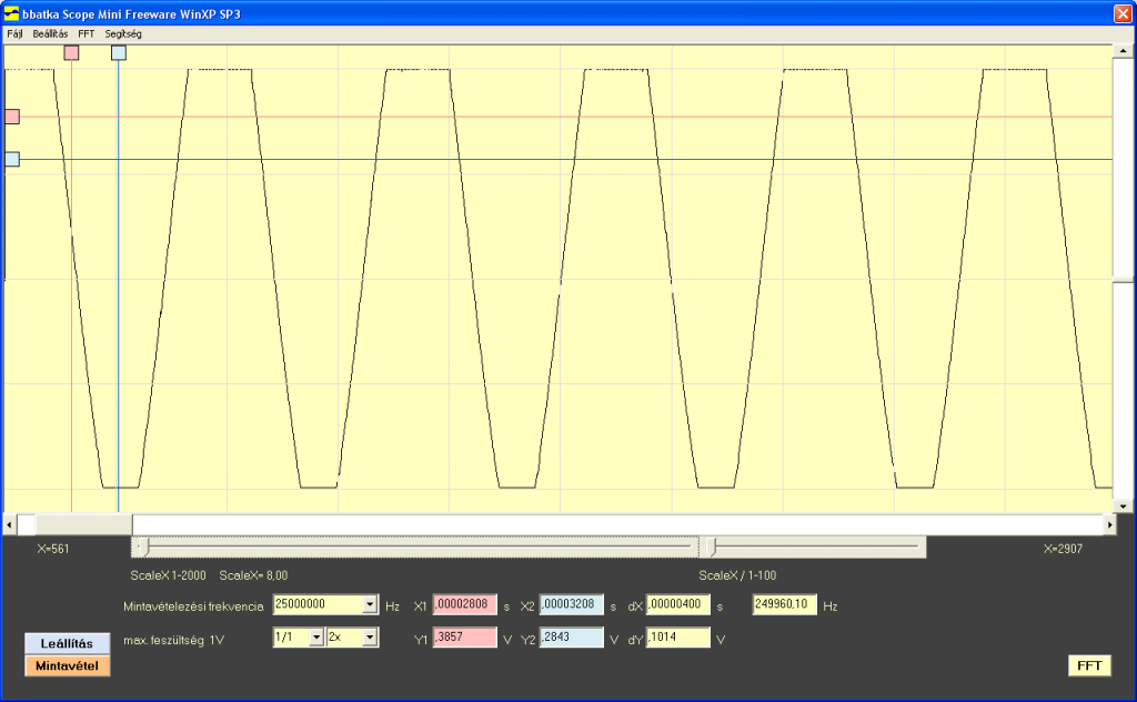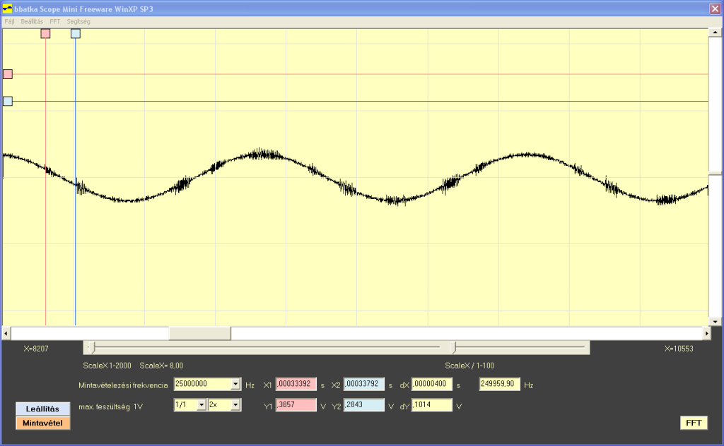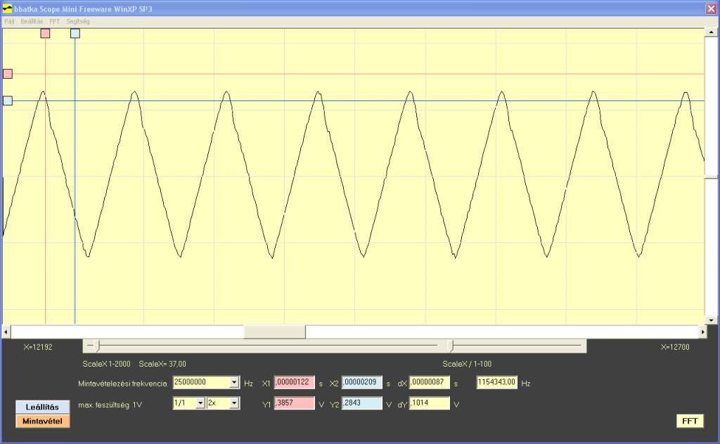 Nem igazán szkópnak készült, de mivel az FPGA-ban volt még egy kis hely ezért még ez is belefért.