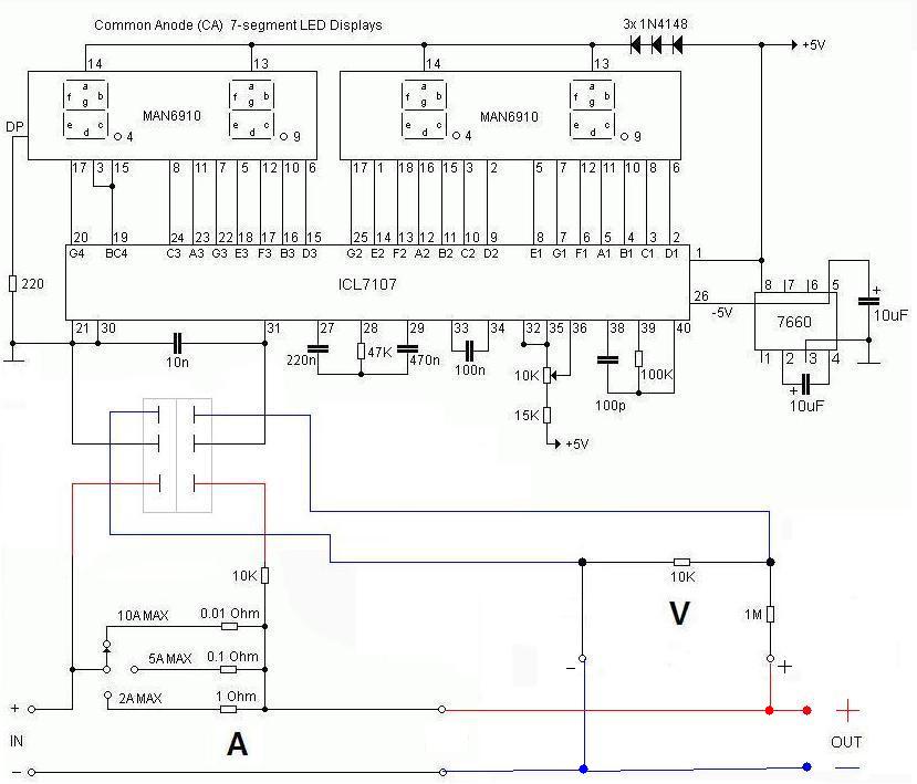 Építeni fogok LM317 és LM337 ICből egy +-15V-os labortápot, és ehhez szeretnék egy panelmérőt építeni ICL7107-tel. A kikötések: egy forgókapcsolóval lehessen irányítani, hogy egy áramkör mérhessen a + és - ágak között feszültséget, a + és GND pontok, illetve a GND és - pontok között pedig áramot. Találtam egy kapcsolást hozzá, szerintetek jó lesz?