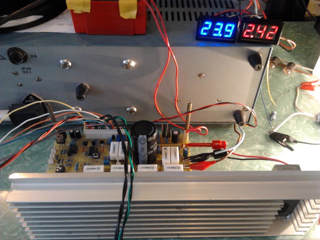 Terhelést tettem rá egy 24V 50W-os izzót és fel sem villant.Mikor rátettem rögtön nulla lett a feszültség.Akármerre tekergettem a P3 potit nem történt semmi.
