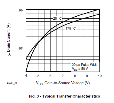 A Gate küszöbfeszültsége alatt gyakorlatilag nem vezet. Vagy is 4V-nál fog kinyitni, de 4,5V Gate feszültség mellett már 7..8A Drain áram is folyhatna. Tehát Gate feszültségének változtatására nagyon kis tartományban meredeken nő az áram. Azaz inkább egy "kapcsolónak" fogható fel, mint vezérelhető ellenállásnak.