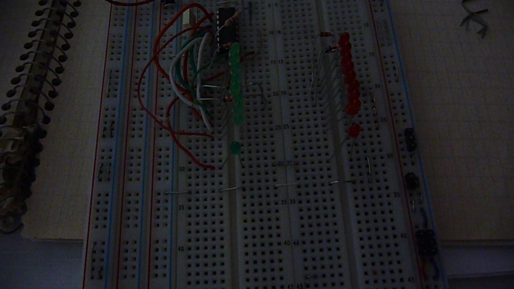 Kapcsolási rajz alapján elkészítettem az áramkört, amit micimacko felrakott. Olyan problémám van vele kábel teszteléskor, hogy az első led villog(nem alszik ki, csak hol erősebben, hol gyengébben világit), a többi nem, mintha számláló nem számolna, nem adna jó órajelet a villogó led. Mi lehet a probléma? 560 Ωos ellenállást használtam mindenhol.