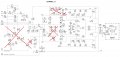 A 13-as mérési pontokon üzem közben kéne jelszintet mérni. Olyan frekvenciát válassz, amit a multimétered fel tud dolgozni, pl. 50Hz-et. Ha a kettő azonos lesz akkor érdemes az IC környékén szétnézni. Amennyiben már itt is eltérés tapasztalható, akkor majd visszafelé haladunk az erősítő-láncban.