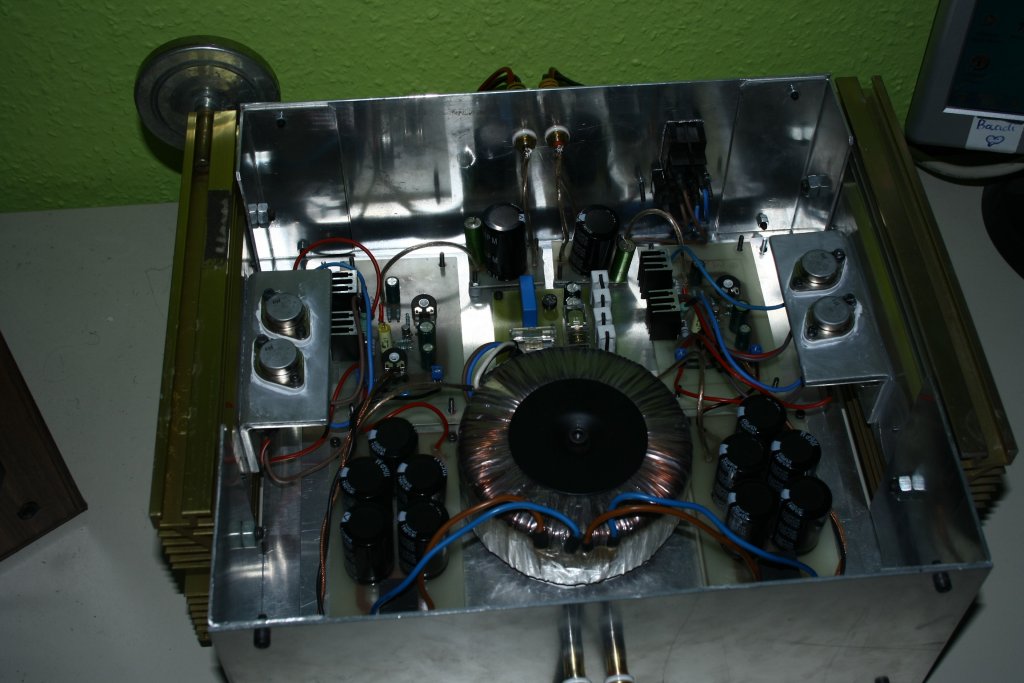 A gépről üzemelve viszont beindult a hang! Nekem elég hangos, hangosabb tényleg nem is kell mivel ezt is csukott ajtón át lehetett hallani (kb olyan hangerővel szólt az ajtó mögött mint amilyennel én szoktam hallgatni a zenét úgy általában). Az egyenirányítóra még mindig nem sikerült hűtőt fabrikálnom, de rajta vagyok az ügyön. Az erősítő most durván 20 percet ment és a végtranyók bordája már nagyon meleg volt kb 70 fok (nem tudtam rajta tartani a kezem), ezért most egy ventilátoron gondolkozom, persze csak néha lenne bekapcsolva vagy nem tudom még gondolkoznom kel rajta... Ja és ezzel az erősítővel sikerült megtornáztatnom egy 125va-s trafót is ( zsír ) . Szerintem egyébként 20W erősítőhöz képest nagyon melegszik, még ha 70w a hőbeli teljesítménye akkor is! No de beszéd elég is jöjjenek a képek...