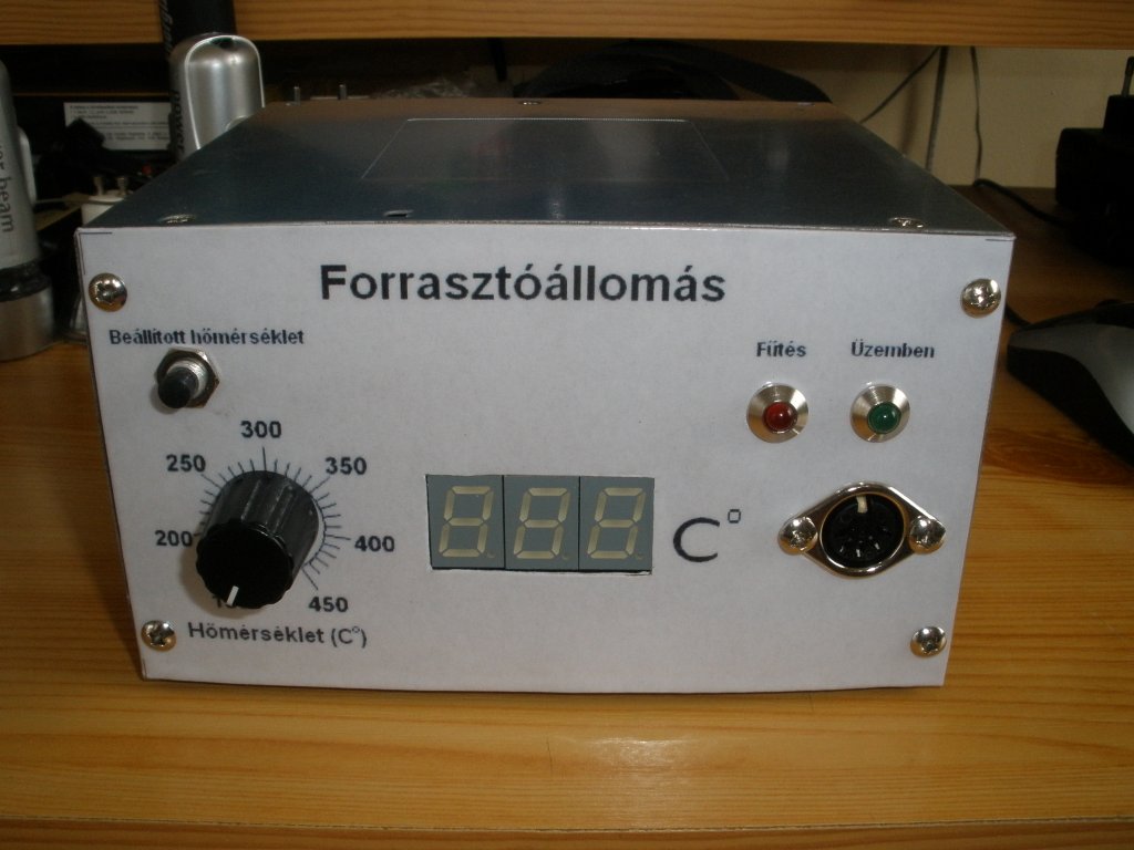 Sikerült a hétvégén befejeznem a forrasztóállomásomat. Ez az Attila86 féle forrasztóállomás II. Az eredeti előlapot kicsit átalakítottam, mivel nem kaptam olyan kapcsolót, ami kiért volna az előlap elé, és beraktam még egy "Üzemben" zöld ledet is. Ha már volt itthon hozzá alkatrész. ![]() A beüzemelésnél volt egy kis probléma, mert a pákát fűtötte, de nem mérte a hőmérsékletét, de a forrasztó állomás hiba topicban ráleltem a megoldásra. Bővebben: Link