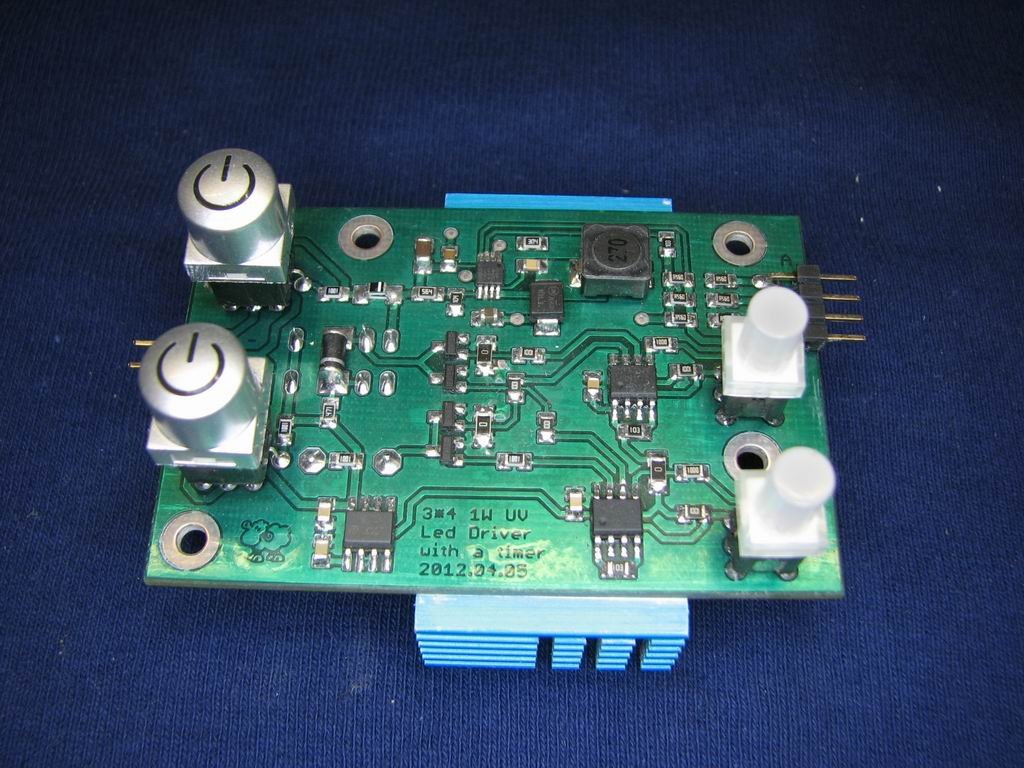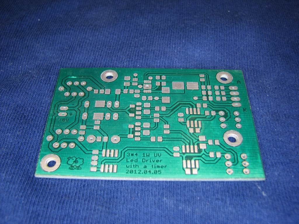A hosszú hétvégén végre volt időm befejezni az UV ledes levilágítómat. Összesen 12db (3×4db) 1W-os 395-400nm-es UV led van benne, melyet mp2481-es IC-re épülő kapcsolás lát el. Az időzítésről Vicsys féle időzítő áramkör gondoskodik, melyből kettő is került a nyákra. A panel vízi ónozva van. A ledek 10cm-re vannak az üveglaptól, melyeket 2mm-es polírozott alulemezre szereltem (kb 12órás használat után is éppen hogy langyos volt). A dobozt 8mm-es rétegelt lemezből készítettem, melyet csapolással és ragasztással rögzítettem össze, az üveg lapok hibás multifunkciós nyomtatókból lettek kitermelve. Az üveges rész kihúzható, hogy a belső részekhez hozzá lehessen férni. A feliratos kis tábla régi bakelites nyákból készült (azt áramkörökhöz már nem használom úgy sem) és akril lakkal lett lelakkozva. A doboz belső felülete fehér akril lakkal lett lefújva, a külső selyemfényű vizes bázisú bútor/parkettalakkot kapott. Több kép a picassa albumomban.