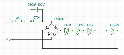 Sziasztok! A hálózati feszültségről működő lámpámban egy LED megszakadt. A javítás alkalmából lerajzoltam mit találtam a belsejében.