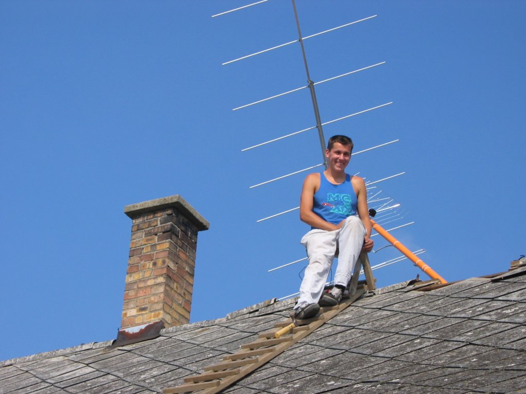 Én a 40 JPG n vagyok a kettős létra alatt.A fiatalaok -a fiam kékben BME s felső és a két turmixfm es tag. Ja és még egy képen a szakállassal vagyok a háttérben a város. - Egyébként az antenna a tetőn van ,fölött 6 méterrel.Az a gond,hogy a szomszéd hozott galambokat és oda szoktak,most kezdhetek kitalálni valamit,vagy lelövm őket.Nincs más meg oldás .Kb 100.ezres beruházás volt legalább!!!