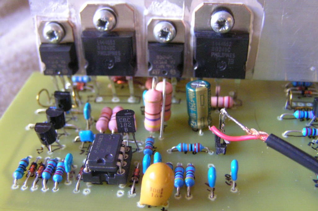 Olyan érzésem van, hogy sima kvázi-komplementer végek helyett megy ez a nagy Quad -építés. A fórumon nyomokban sem találom, pedig a topológiának amúgy semmi baja. Most volt nálam egy készülék: +/-90V táp, 16db MJ15003-mal, semmi kivetni valót nem találtam a hangjában.