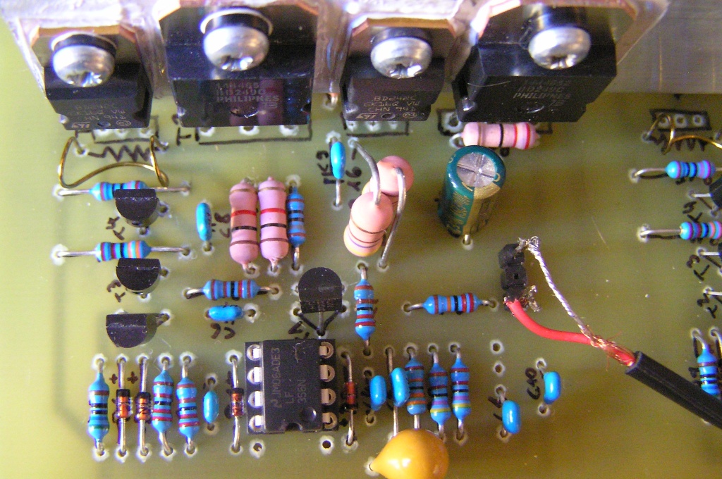 Olyan érzésem van, hogy sima kvázi-komplementer végek helyett megy ez a nagy Quad -építés. A fórumon nyomokban sem találom, pedig a topológiának amúgy semmi baja. Most volt nálam egy készülék: +/-90V táp, 16db MJ15003-mal, semmi kivetni valót nem találtam a hangjában.