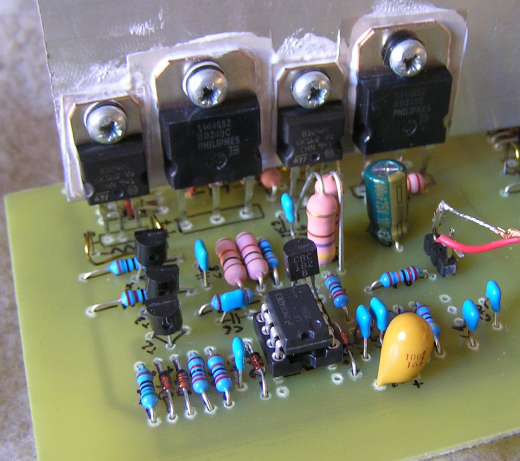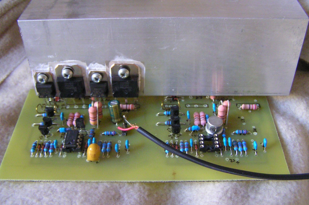 Olyan érzésem van, hogy sima kvázi-komplementer végek helyett megy ez a nagy Quad -építés. A fórumon nyomokban sem találom, pedig a topológiának amúgy semmi baja. Most volt nálam egy készülék: +/-90V táp, 16db MJ15003-mal, semmi kivetni valót nem találtam a hangjában.