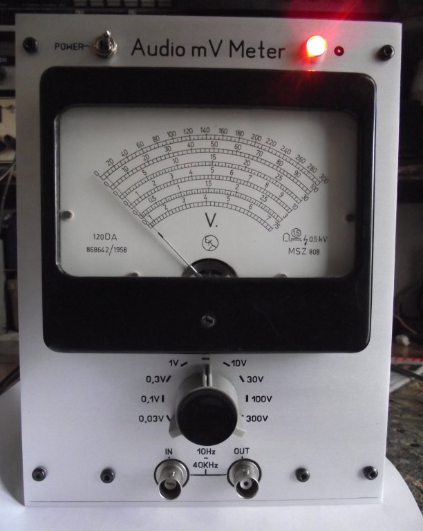 Végigpróbáltam az OA széria diódáit, OA1182 tökéletesen megfelelő, nyitófeszültsége is 200mV alatt van, ami szintén előny. Skála kezdő szakaszában a linearitás is jobb ezzel a diódával. OA1161 20KHz felett erősen kiemel (kis kapacitás hátrány itt) és 300mV felett nyit. Nagyon jól használható még a 2SAxxx GE tranyók B-E diódáik, 100KHz feletti lineáris átvitel érhető el.. 6AL5 több hátránnyal járna mint előnnyel. Műszer skáláját át kéne rajzolni, skála első (alsó szakaszában ) tartományában pontatlanabb lenne, sokat gyengülne a linearitás, műszer fogyasztása is jóval megnőne, semmi nem szól használata mellett..