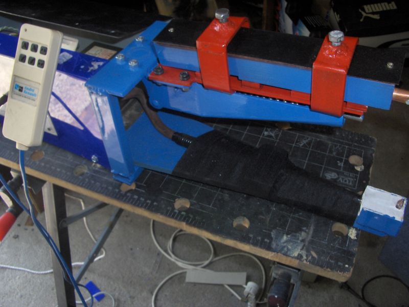 bronzot haszálnak, ez nem egy olcsó dolog a normál réznél 3-4szerese az ára, de sokat bír. A szekunder tekercs pl 0,3x70mm vörösréz szalag 1-2 menet a trafótól függően. Hegesztéskor 1-2V van és 2-3000A ezt speciális. A szalagot term.szigetelni kell. Megfelel helyette vastag vörösréz sodrat is 2-3 szál párhuzamosan . tirisztorral szokták kapcsolni akár a másodperc töredéke is elég, természetesen a szekunder oldalt kell szabályozni. Áramot és időt. A szorítást mechanikusan is meg lehet csinálni áttételesen, és öntertó amig ráadjuk az inpulzust. Ha nem egy gyárit koppintunk le, ezen felsorolt tartományokban kisérletezéssel kell mindenképpen kitapasztelni az optimális paramétereket. Az elektródák átmérője 12-20mm lehet. Vannak mikrokontrolleres vezérlésüek ezekkel precizebben lehet hegeszteni. A trafó 1-1,5 kVA bőven elég,mert nagyon rövid időre a többszörösét elviseli. Pacemaker-esek ne álljanak közel hozzá.