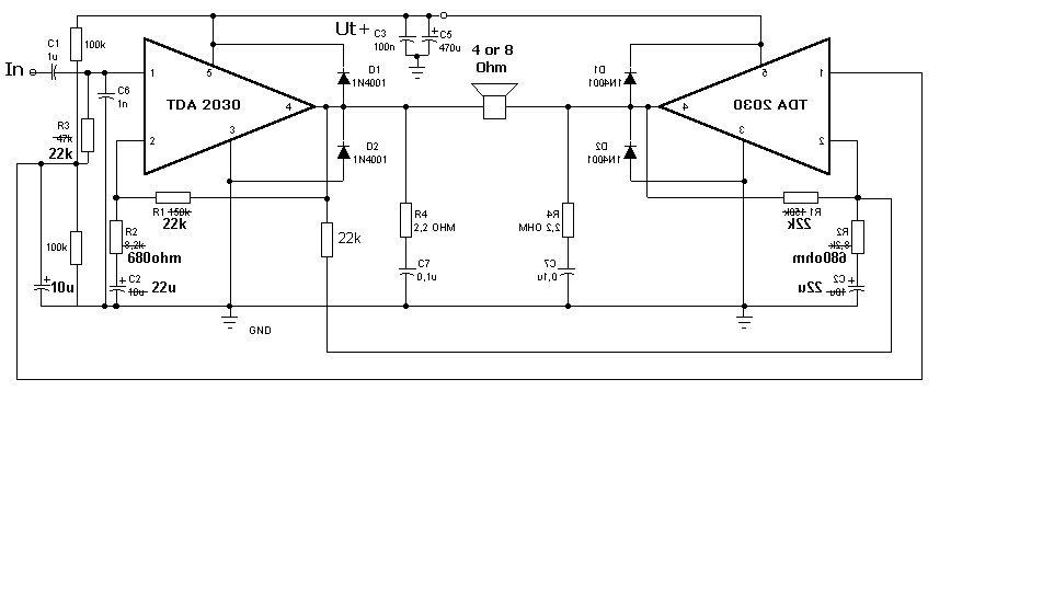 Az alábbi link mutatja azt a 40W-os végtranzisztoros kapcsolást, amit hídba szeretnék kötni