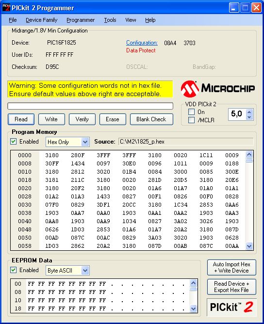 Egy 16F1825-öt próbálok működésre bírni. A gondom az, hogy úgy tűnik mintha a config biteteket nem akarná az mplab beletenni a hexbe.