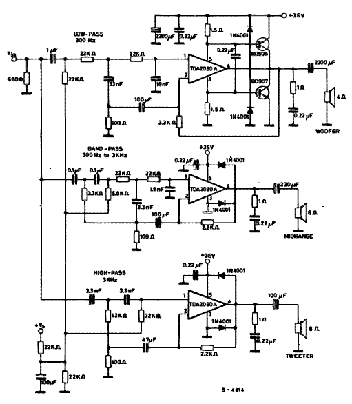 Sziasztok! Kevesen forgatjátok a TDA2030A adatlapját. Ott található a mellékelt kapcsolás. A vágási frekvenciákat igény szerint át is lehet számolni. Nagyon megtetszett az egyszerűsége, mely egyben megbízhatóságot is ígér