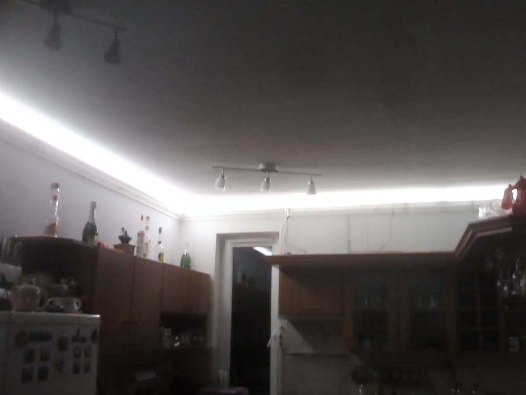 Szia! A kép valójában nem adja vissza azt a hatást amit én látok,tehát ez az amit nem látsz a képen. Hangulatnak ez már pont jó.(tegyük fel hogy TV-zek vagy gépezek). Egyáltalán nincs sötét, sőt amint írtam attól tartok hogyha meglesz a másik két csík is ami majdnem körbemegy akkor valami fényerő szabályzót is fog kelleni csinálnom.Megpróbálok valami értelmesebb képet készíteni,más fényforrást direkt nem használtam,és a telefonom homályban nem csinál értelmes képeket ,de megpróbálom újból Üdv.