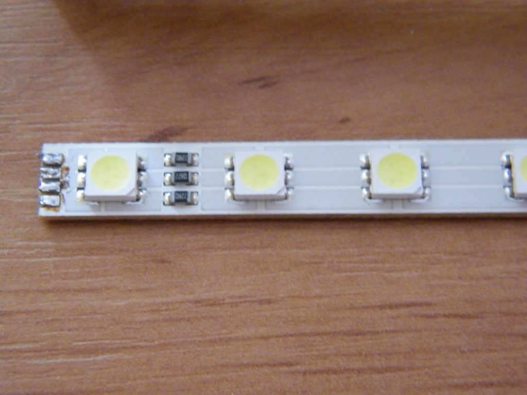 2 csík: 46 egység-138 db led. 82 ohmos előtét ellenállásokkal.