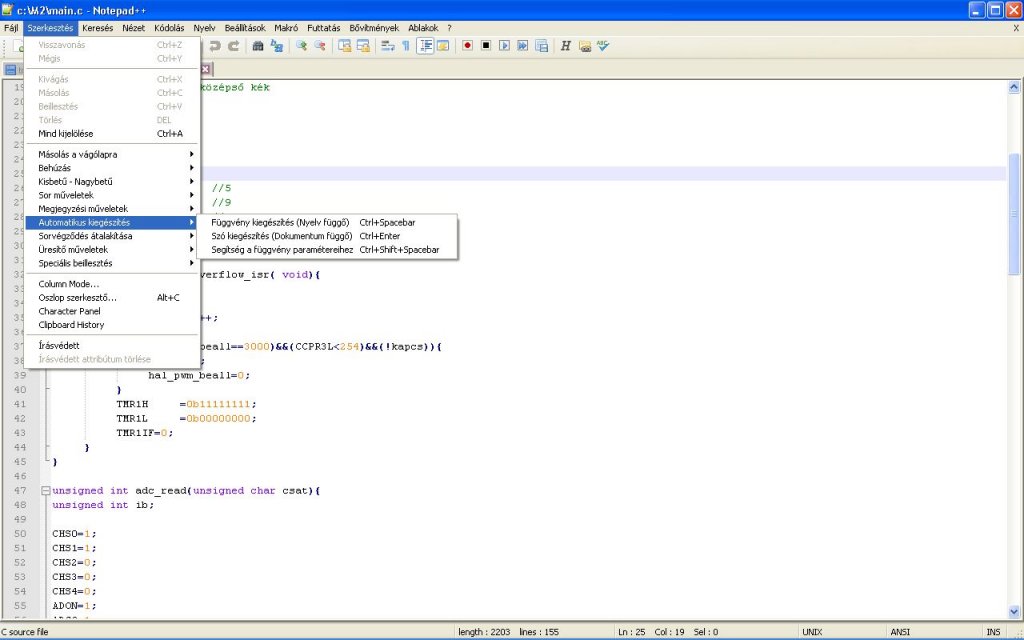 Ezeket csinálja ám az is amit írtam, és még jópár (ultraedit, programmer's notepad...). Sőt, be lehet állítani külső futtatást, így ha van kedve az embernek, akár abból is meg lehet hívni a fordítót, parancssorosan. Tud kódkiegészítést is. Amit nem tud, az a szimuláció, a könyvtári függvények paraméterezésének a súgását. Bár azt nem tudom az mplab tudja e. Az alt+tab pedig azért kell mert azzal átváltok az mplabra, és ott fordítok. Szerkeszteni viszont (szerintem) jobb a n++, fejlett könyvjelző, kereső, ha kijelölök egy változót, kiszínezi mással a többi előfordulását, lényegesen kontrasztosabb, részletesebb a színezése.