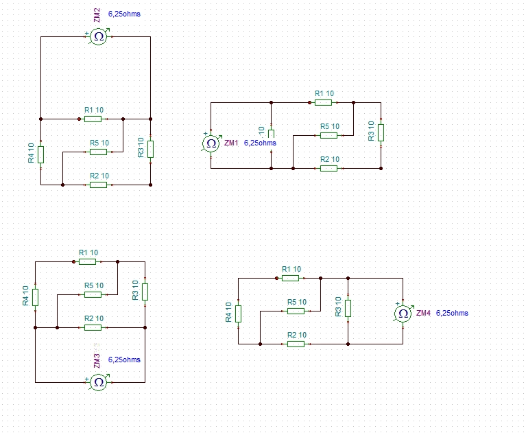 A második esetben 3*R lesz sorba az egyik ágon, és párhuzamosan a másik ágon a maradék 1 db R-rel. Tehát az eredő: 3*RXR=0,75*R
