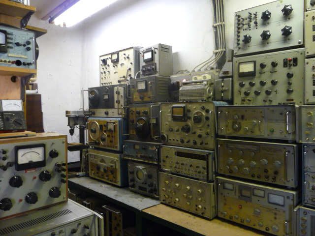 Itt szó sincs műhelyről, ez raktár. Viszont abból valóban egy csoda. Izgalmas lenne a készülékek mellé egy kis technikatörténeti kutatást is végezni, eredeti gépkönyveket felkutatni, esetleg a felhasználási kör műszaki indokoltságát is kutatni (akkoriban született néhány olyan műszer, amiről nagyon kevesen tudták mire is való).