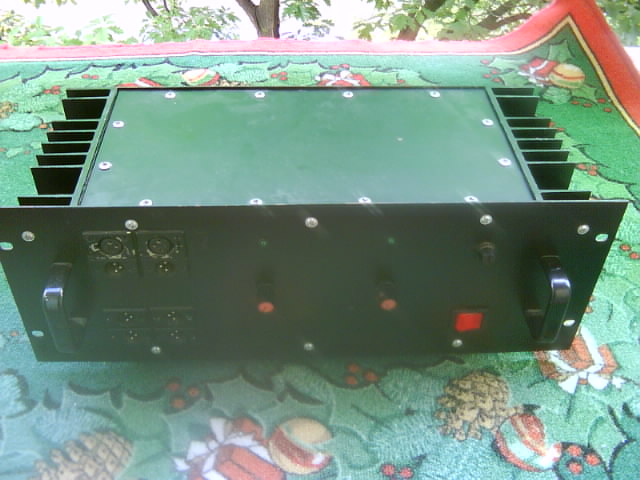 Hali! Nem tudom hogy házi-e vagy gyári mert már le volt festve az eleje és nem lehet ki olvasni a márkáját. Utána néztem valamikkor a netten trafó alapján és, találtam egy ugyan ilyen végfokot és arra következtem hogy, gyári lehet. Ritka egy végfok és bivaly erős.