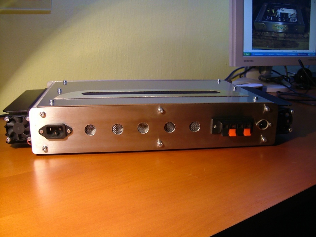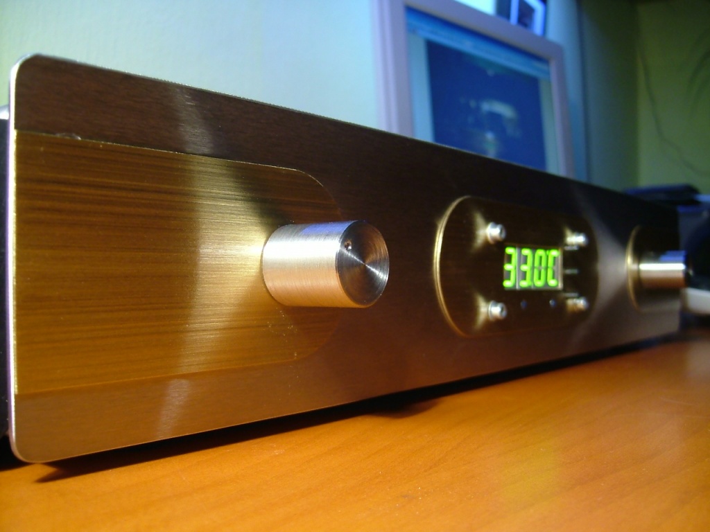 Végre teljesen elkészült a JLH erősítőm. Próbáltam egyedivé tenni egy termosztáttal ami a borda hőmérsékletét mutatja és a beállított értékektől függően kapcsolja a bordák végén levő coolereket.