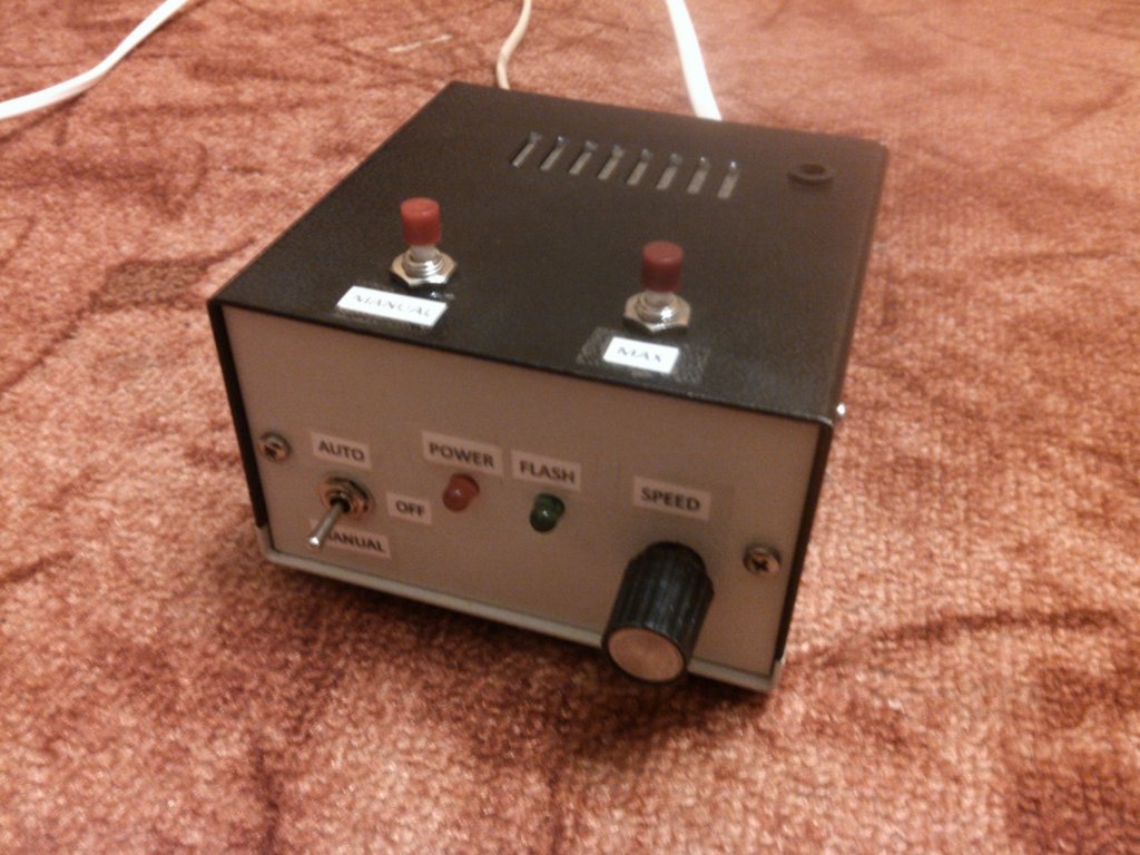Az egyik barátom panaszkodott, hogy ahová járnak ki discozni, ott a stroboszkóp csak egy kapcsolóra van kötve, vagy megy, vagy nem. Kérdeztem tőle, van e a hátulján valami, azt mondta, egy 6.3-as jack ajzat. A feladat adott volt csináltam hát egy egyszerű kis vezérlőt. Kétféle üzemmódja van, automata és manuális, automatában a saját 555-el felépített vezérlés adja a jelet a stobinak, manuálisban egy nyomógombal lehet elvillantani a csövet. Egy nyomás, egy villanás. A potmétert egy másik nyomógombal rövidre lehet zárni, ilyenkor a beállított sebességtől függetlenül, maximálisan sokkolja a népet. Remélem rendben levizsgázik az este folyamán.