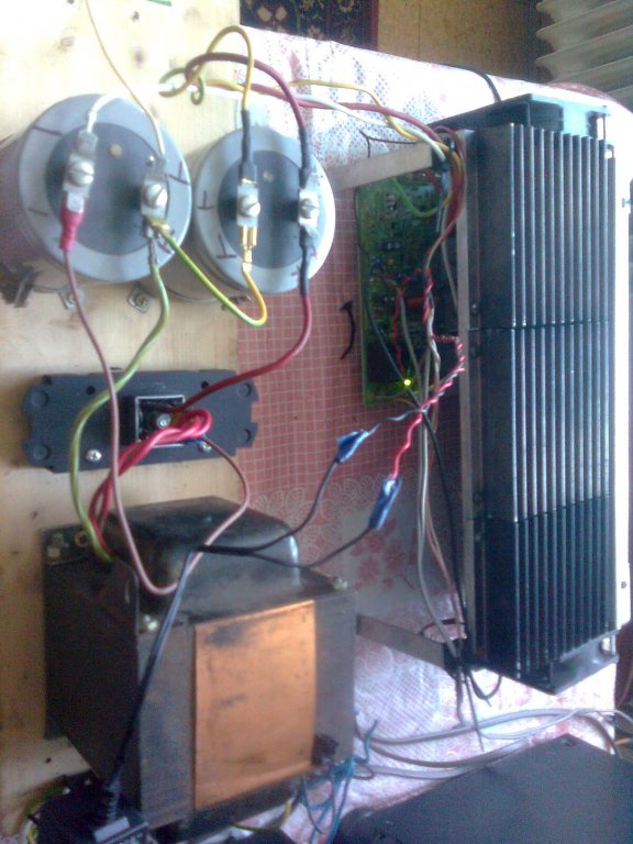 600 wattos orosz aksitöltő trafó elég durván berobban benne ahogy számolom tiéd is "súlyban van" bár te kész cuccokból építkeztél vagy forrasztottad a panelt? Mert a trafót is én tekertem.