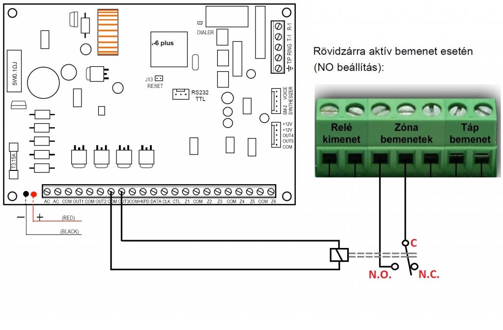 A csatolt képen látható módon kell a relét bekötni.