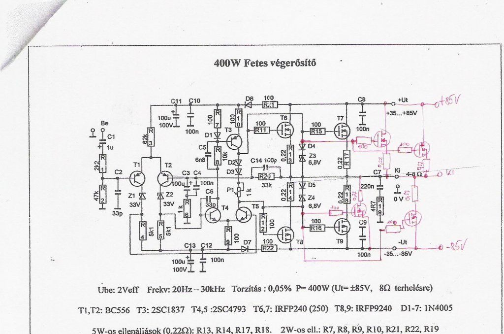 „A rajz hibáját megválaszoltam az előbb. 2x400W/8ohm-ra nem alkalmas a kapcsolás.