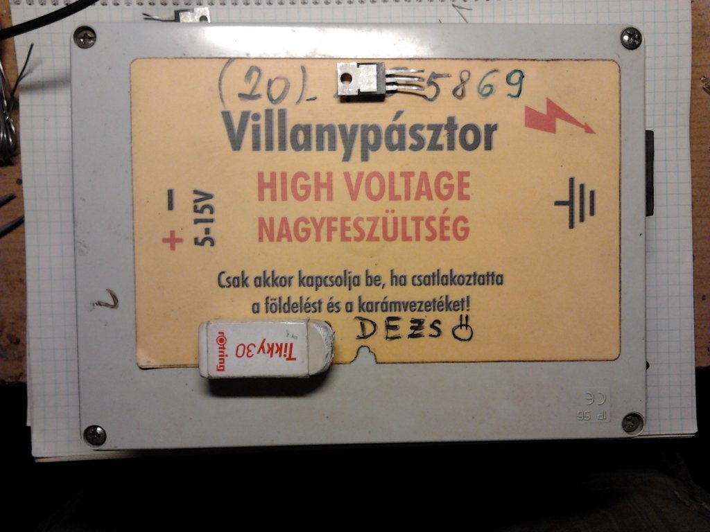 Maga a kimenő trafó vszínűleg úgy tekerte valaki és a vasmag lazán van a tekercs körül és a kondi kisülésekor akkora e mágnesesség keletkezik, hogy mondhatni a csévetest elmozdulása miatt lehet kattogást hallani. De ez mekkora,hogy egyesek tényleg a dobozon kívülre teszik az alkatrészeket. [OFF]Belürre mit tehettek az őrzött jószágot.