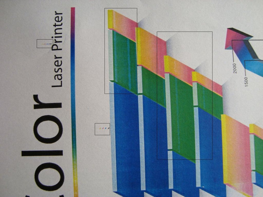 Szia, hat ez erdekes bibi. Anyit okultam a netrol, hogy ez egy kazettas nyomtato, es nem is kicsi, meg hogy 1 dobja van. Kar hogy a kepek csak a papir egy reszet abrazoljak. Ismetlodnek azok a szines pontok? Ha igen, probalj meg rajonni, ohyg minek a keruletevel egyezik meg a pontok kozotti tavolsag. Es vizsgald meg a kazettakat is, azt a hengert ami kihozza a tonert a kazettabol.