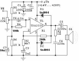 A dióda szerepe: a hangszóró tekercs lengése által gerjesztett feszültségtől óvja a kimenetet. Záróirányban a kapcsolás tápfeszültségét, nyitó irányban 1A-t elég ha elvisel.