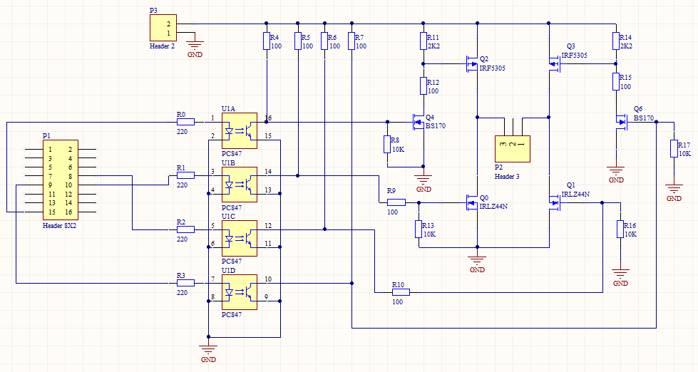 - Ez a rajz nem működik. Az opto kollektorát a tápra kell tenni, és az emitterek mennek a Gate-be.